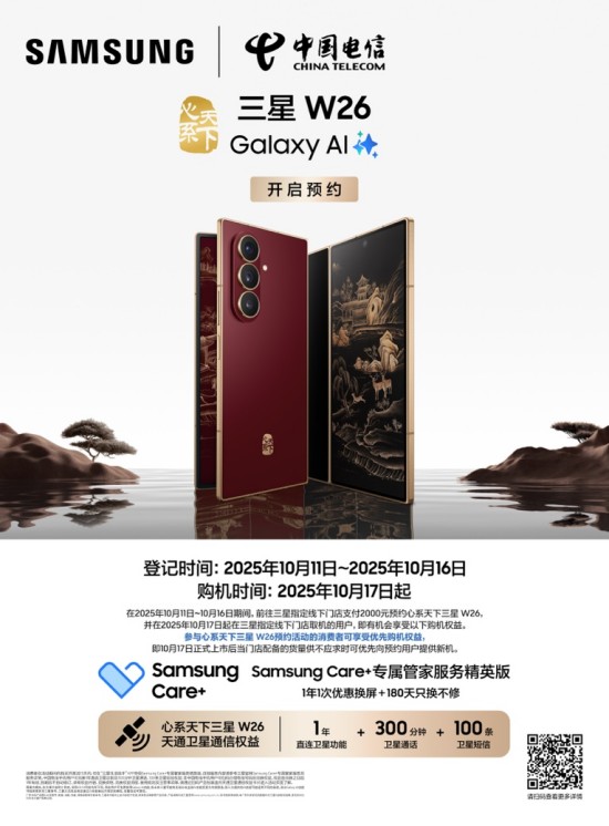 心系天下三星W26現(xiàn)已正式開啟預約,即刻加入尊貴序列,體驗科技與美學的經(jīng)典融合,見證高端格局的再一次進階。