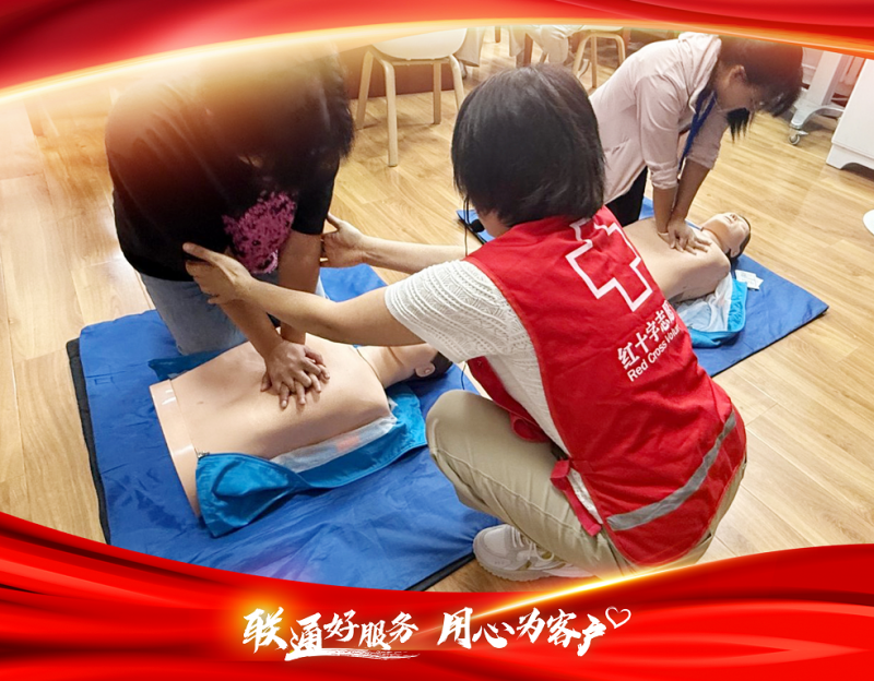 “雙手交疊,垂直按壓,頻率要保持在每分鐘100-120次……”在大興區(qū)興政中里社區(qū)的活動(dòng)現(xiàn)場(chǎng),紅十字培訓(xùn)師的講解聲和客戶的練習(xí)聲交織在一起。原來(lái),這是北京聯(lián)通大興分公司聯(lián)合區(qū)紅十字會(huì)開(kāi)展的“應(yīng)急救護(hù)知識(shí)普及”聯(lián)通客戶日公益活動(dòng)——從徒手心肺復(fù)蘇到AED(自動(dòng)體外除顫器)使用,從止血包扎到氣道異物梗阻急救,每一個(gè)技能都對(duì)應(yīng)著生活中的突發(fā)情況,每一次演示都為了讓客戶“敢救、會(huì)救”。
