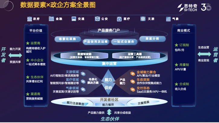 思特奇“數(shù)據(jù)要素×政企”方案構(gòu)建"開發(fā)者社區(qū)-產(chǎn)品服務(wù)門戶-聯(lián)合運營"全鏈路生態(tài)體系: