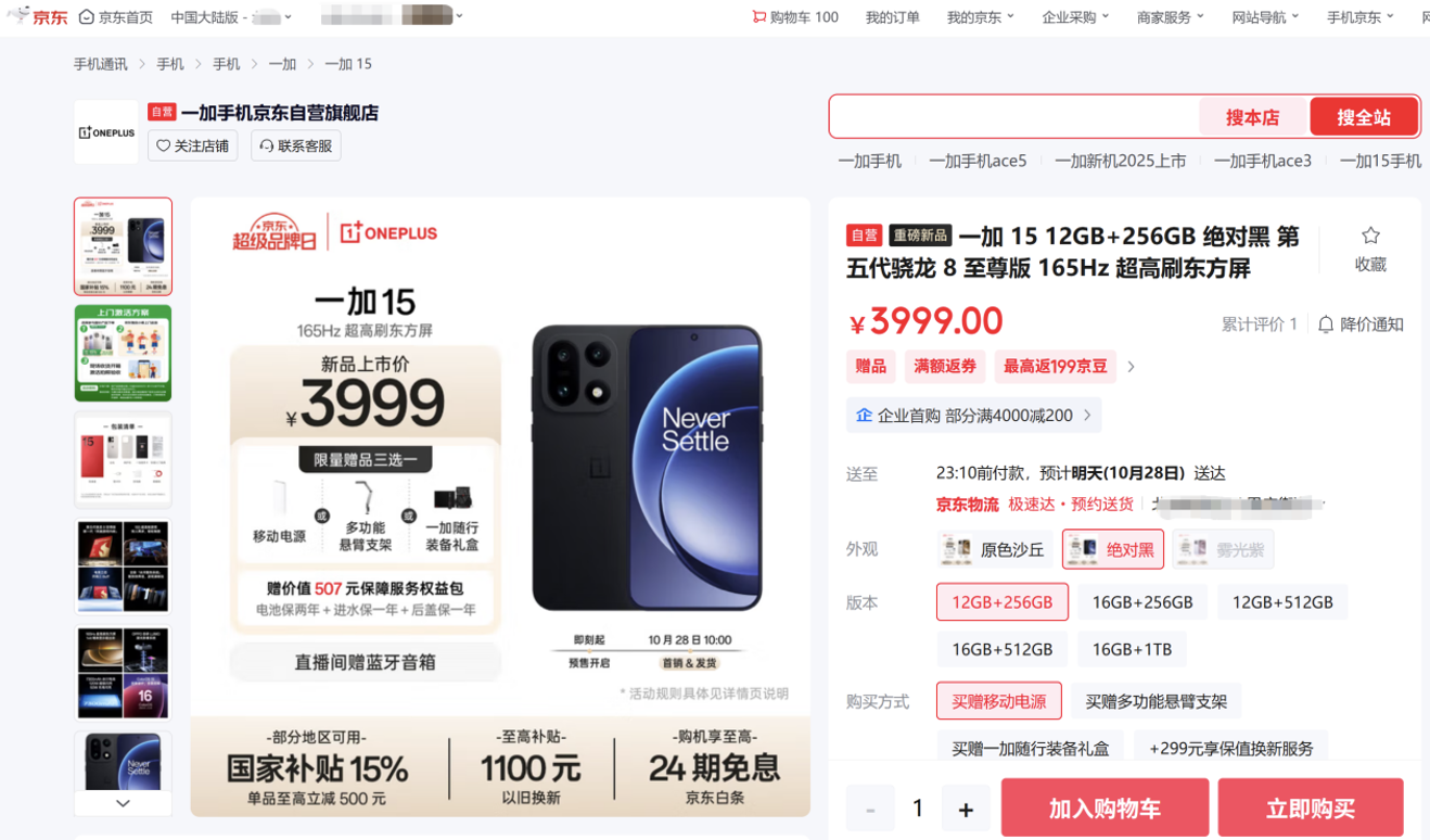 一直以來,京東依托強(qiáng)大的供應(yīng)鏈優(yōu)勢,持續(xù)攜手一加等廠商深度合作,通過營銷共創(chuàng)、差異化服務(wù)、全渠道能力等給予新品首發(fā)助力,實(shí)現(xiàn)新品即爆品。為進(jìn)一步滿足消費(fèi)者新品國補(bǔ)換新需求,給予用戶更多“搶鮮”權(quán)益,京東攜手一加等3C數(shù)碼廠商、運(yùn)營商及回收企業(yè),發(fā)起“京東先人一步加速換新計(jì)劃”——消費(fèi)者在京東下單3C數(shù)碼新品可享國家補(bǔ)貼疊加以舊換新補(bǔ)貼、京補(bǔ)合約等多重補(bǔ)貼福利。同時,在新品服務(wù)權(quán)益加碼的基礎(chǔ)上,消費(fèi)者還可享受“權(quán)益隨心選”這一全新購新方式,獲得更加自由靈活的換機(jī)體驗(yàn)。