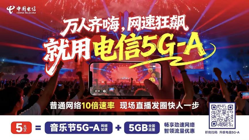 此外,江蘇電信為此次咪豆音樂(lè)節(jié)打造的5元含5G流量的5G-A場(chǎng)館包,可以享受2日(次日失效)下行峰值速率3Gbps、上行峰值速率400Mbps的超高5G-A速率。