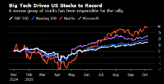 隨著美國股市的創(chuàng)紀(jì)錄上漲推高估值,圍繞AI泡沫的擔(dān)憂升溫?萍脊蓹(quán)重較高的納斯達(dá)克(23043.3778, 255.02, 1.12%)100指數(shù)今年上漲18%,預(yù)期市盈率為28倍,而其10年平均水平為23倍。