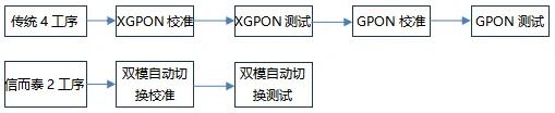 極限優(yōu)化:產(chǎn)線生產(chǎn)工藝流程成熟以后,甚至可進(jìn)一步合并為1工序完成XGPON&GPON雙模校準(zhǔn)&測試