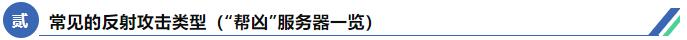 攻擊者會尋找那些“問得少,答得多”的協(xié)議。以下是一些常見的反射攻擊類型: