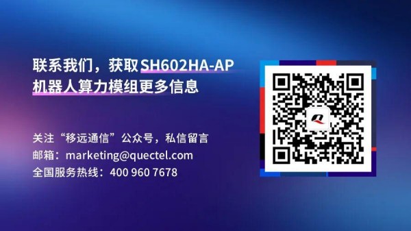 移遠通信COO張棟表示:“從割草機、掃地機等家用服務(wù)設(shè)備,到前沿的人形機器人,各類形態(tài)的機器人正深刻重塑人類生產(chǎn)生活方式。移遠始終致力于為智能機器人打造堅實的端側(cè)算力與通信基座,而SH602HA-AP模組的推出,不僅實現(xiàn)了算力、感知的雙重升級,更關(guān)鍵的是大幅降低了高端智能機器人的開發(fā)門檻,為行業(yè)創(chuàng)新注入核心動力!