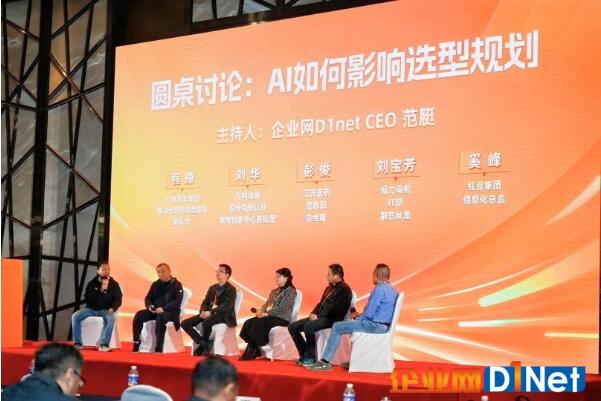 嘉賓分享之后,以“AI如何影響選型規(guī)劃”為主題的圓桌討論正式開始。討論由企業(yè)網(wǎng)D1net CEO范脡主持,國機(jī)集團(tuán)、廣州汽車集團(tuán)、江蘇醫(yī)藥、恒力電機(jī)、紅豆集團(tuán)等企業(yè)的信息部高管參與了討論。