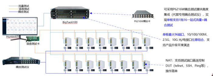 當使用BigTao6100測試系統(tǒng)+ P6216W時可以完成多任務一站式融合測試,具體包括: