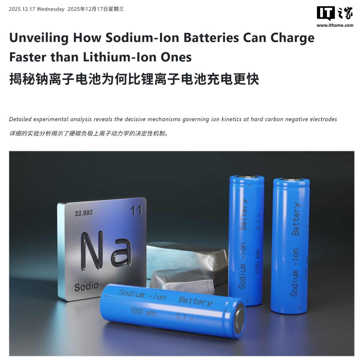 12 月 18 日消息,東京理科大學(xué)(TUS)昨日(12 月 17 日)發(fā)布博文,宣布其科研團隊證實,鈉離子電池(SIBs)在使用硬碳負(fù)極時,其充電速度在本質(zhì)上可超越鋰離子電池(LIBs),有望成為智能手機電源的下一代解決方案。