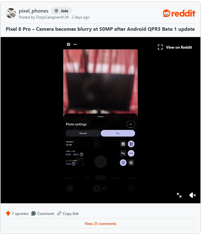 12 月 21 日消息,谷歌近期面向符合條件的設備推送了 Android 16 QPR3 Beta 1 版本更新,然而越來越多的用戶反饋,此次更新引發(fā)了嚴重問題。具體來看,已有大量報告指出,谷歌 Pixel 系列手機在安裝 Android 16 QPR3 Beta 1 固件后,出現了相機對焦故障。