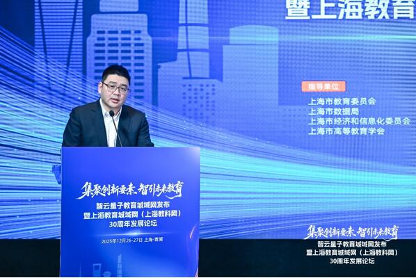 2025年12月26日,在智云量子教育城域網(wǎng)發(fā)布暨上海教育城域網(wǎng)三十周年發(fā)展論壇上,上海市數(shù)據(jù)局副局長翁軼叢、中國電信上海公司副總經(jīng)理龔豪、上海市教育委員會(huì)信息化工作處處長韓崇虎、上海市大數(shù)據(jù)中心副主任王明政、上海市經(jīng)濟(jì)和信息化委員會(huì)人工智能發(fā)展處副處長陳釗共同啟動(dòng)“智云量子教育城域網(wǎng)”。