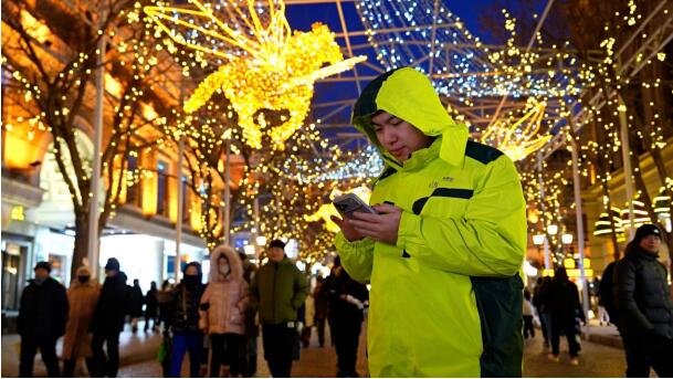 來自南方的劉女士剛離開冰雪大世界,乘坐地鐵來中央大街。在中央大街上,劉女士與朋友一邊翻看剛剛在冰雪大世界拍攝的照片,一邊商量將哪些照片發(fā)布于社交平臺。“聽說晚上的中央大街和索菲亞大教堂非常美,拍照很出片!眲⑴空f。移動網(wǎng)絡(luò)的順暢,讓像劉女士這樣的移動客戶,隨時隨地都能發(fā)朋友圈、做直播,暢享冰雪旅游帶來的快樂。