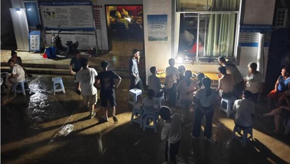 當(dāng)時(shí)間回到6月24日中午,在榕江縣城古州北路的中國(guó)移動(dòng)貴州公司黔東南榕江分公司大院內(nèi),堆積的防洪沙袋也擋不住上漲的洪水。很快一樓的發(fā)電機(jī)房就因?yàn)檫M(jìn)水停止了運(yùn)行,四樓機(jī)房有備用電力保障還在繼續(xù)運(yùn)行,支撐著這一片的信號(hào)。全城停電的24日晚上,一則消息在榕江人的朋友圈傳開(kāi):“手機(jī)需要充電的朋友,可到榕江移動(dòng)公司來(lái)充電!”收到消息的群眾趕來(lái),圍坐在一起,給手機(jī)充電,給在外的親友打去電話報(bào)平安。在周圍的一片漆黑中,院里靠發(fā)電機(jī)亮起的燈光格外明亮。