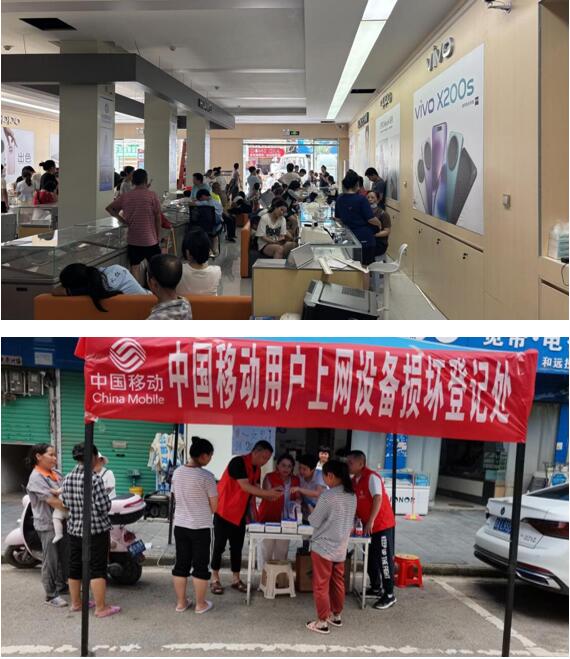 在搶修通信的同時(shí),中國(guó)移動(dòng)始終將群眾的需求放在首位,為群眾提供充電上網(wǎng)、免催免停、緊急開(kāi)機(jī)、贈(zèng)送流量等服務(wù),方便群眾在緊急情況下與家人取得聯(lián)系。一位外地游客在聽(tīng)說(shuō)移動(dòng)公司這邊可以充電打電話后,也趕過(guò)來(lái)給家里報(bào)了平安,讓家人不用擔(dān)心。不僅如此,為了減輕群眾的災(zāi)后重建壓力,中國(guó)移動(dòng)還組織網(wǎng)絡(luò)修復(fù)專項(xiàng)攻堅(jiān)團(tuán)隊(duì),一邊挨家挨戶上門詢問(wèn)沿街商鋪、酒店的受災(zāi)情況,一邊擺攤設(shè)點(diǎn)登記群眾需求,免費(fèi)更換被洪水泡壞的攝像頭、路由器等設(shè)備,與受災(zāi)群眾攜手共渡難關(guān),重建美好家園。