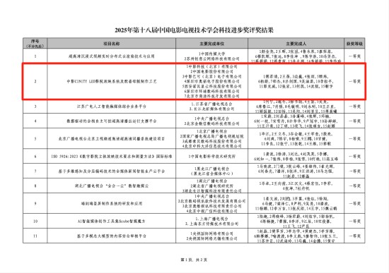 中影CINITY LED影院放映系統(tǒng)及配套母版制作工藝榮膺2025年中國電影電視技術(shù)學(xué)會科技進步獎一等獎