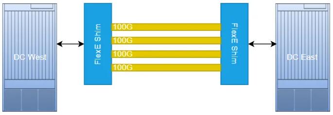 大型云服務(wù)商和互聯(lián)網(wǎng)公司擁有多個地理分散的數(shù)據(jù)中心,在這些數(shù)據(jù)中心之間需要支持虛擬機(jī)遷移、海量數(shù)據(jù)備份、分布式服務(wù)等功能。這些功能都需巨大的帶寬提供支持。使用FlexE 技術(shù),通過對物理鏈路的綁定,實現(xiàn)了數(shù)據(jù)中心鏈路擴(kuò)容的平滑升級。