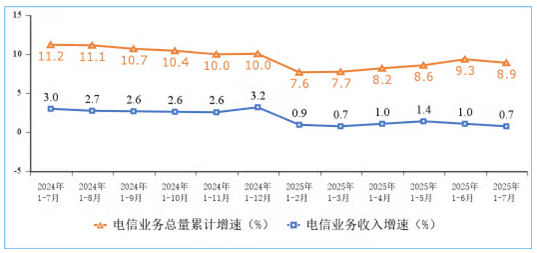 近日,工業(yè)和信息化部運行監(jiān)測協(xié)調局公布了2025年前7個月通信業(yè)經(jīng)濟運行情況。前7個月,通信業(yè)運行總體平穩(wěn),電信業(yè)務量收保持增長,新型基礎設施建設不斷推進,5G、千兆、物聯(lián)網(wǎng)等用戶規(guī)模穩(wěn)步增加。