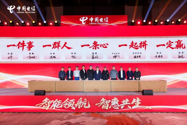 本次大會(huì)上,山東電信與榮耀、小米、華為、vivo、OPPO、中興等終端廠商,以及新藍(lán)圖、億維、億華、中巖等省內(nèi)強(qiáng)商共同舉辦“2026渠道終端生態(tài)合作戰(zhàn)略簽約”儀式,標(biāo)志著山東電信領(lǐng)銜的渠道終端生態(tài)聯(lián)盟合作更加緊密,合作基礎(chǔ)更加穩(wěn)固。同時(shí),大會(huì)上多項(xiàng)AI創(chuàng)新成果與發(fā)展規(guī)劃精彩亮相,重點(diǎn)呈現(xiàn)了引領(lǐng)AI潮流的天翼智屏、天翼智鈴等“四智產(chǎn)品”,以及中國(guó)電信具有前瞻性的“AI+智能體”、“AI+具身智能”、“AI+端側(cè)智能”、“AI+綜合治理”等戰(zhàn)新產(chǎn)品和平臺(tái)化業(yè)務(wù),F(xiàn)場(chǎng)的小米、vivo、中興、榮耀、OPPO 等知名手機(jī)品牌也在現(xiàn)場(chǎng)展示了最新的5G終端,全方位沉浸式展現(xiàn)中國(guó)電信領(lǐng)銜的渠道終端生態(tài)聯(lián)盟在全渠道終端領(lǐng)域的創(chuàng)新成果。
