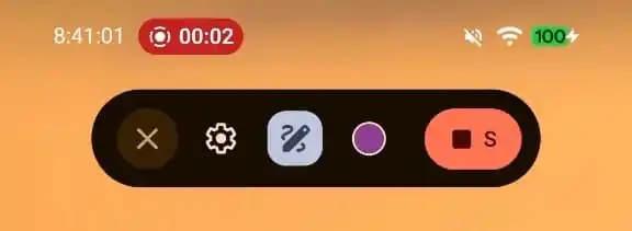 錄制開始后,膠囊控件會自動隱藏至狀態(tài)欄,點擊即可喚出;在錄制過程中,用戶可訪問相關(guān)設(shè)置,也可以使用多種顏色的畫筆進行涂鴉;錄制結(jié)束后,系統(tǒng)還會提供預(yù)覽界面以便用戶快速分享或編輯視頻。