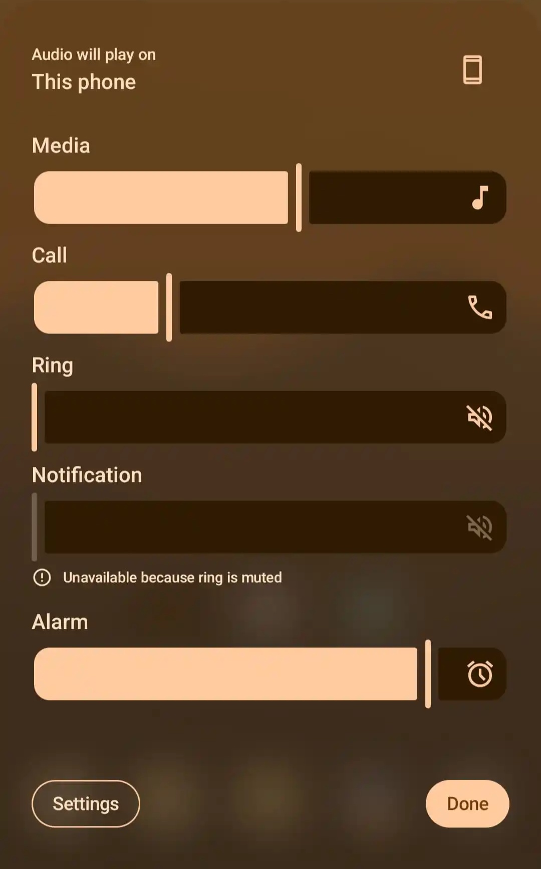 該方案不僅能讓用戶隱約看到底層的壁紙圖案,還完美適配了動態(tài)取色(Dynamic Color)主題引擎,音量面板底部啟用新圖標(biāo),替代傳統(tǒng)的“...”設(shè)計。IT之家附上相關(guān)截圖如下: