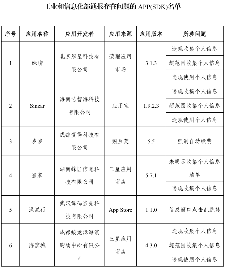 工信部通報(bào)22款侵害用戶權(quán)益行為APP(SDK)
