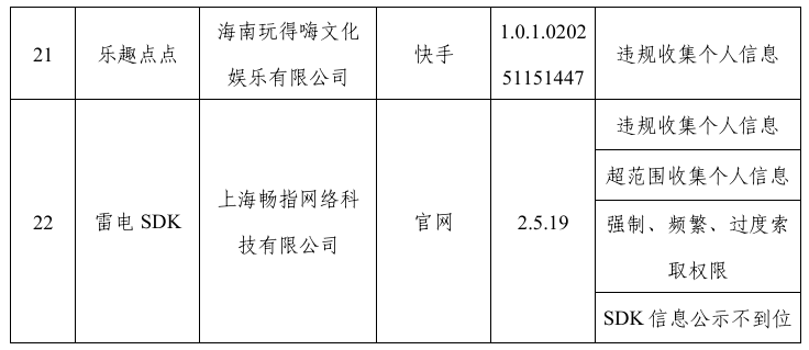 飛象網(wǎng)訊(致新/文)1月9日消息,工信部近期組織第三方檢測機(jī)構(gòu)進(jìn)行抽查,共發(fā)現(xiàn)22款A(yù)PP及SDK存在侵害用戶權(quán)益行為,并予以通報(bào)。上述APP及SDK應(yīng)按有關(guān)規(guī)定進(jìn)行整改,整改落實(shí)不到位的,工信部將依法依規(guī)組織開展相關(guān)處置工作。