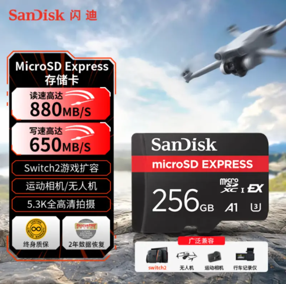 此外,產(chǎn)品提供兩年的RescuePRO Deluxe文件恢復(fù)服務(wù),搭配終身有限質(zhì)保,讓玩家使用時(shí)無后顧之憂,盡情沉浸于游戲世界。值得一提的是,除了游戲場景,SanDisk閃迪的microSD Express存儲(chǔ)卡還適用于無人機(jī)、運(yùn)動(dòng)相機(jī)、行車記錄儀等設(shè)備,憑借強(qiáng)勁性能為多元場景提供可靠存儲(chǔ)支持。