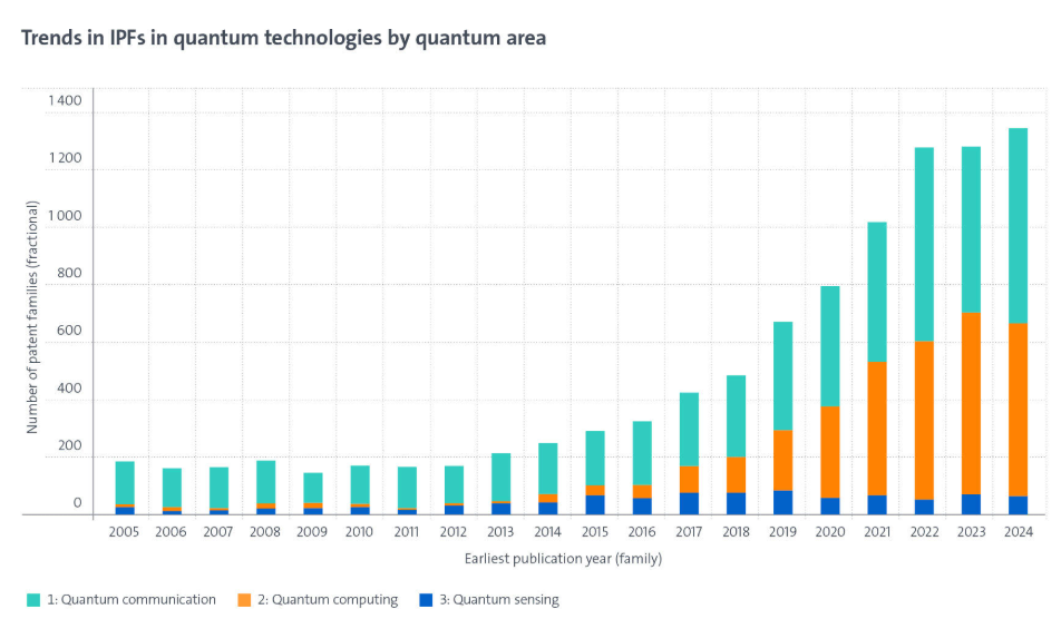 為了量化三個關(guān)鍵量子領(lǐng)域 —— 通信、計算和傳感 —— 的趨勢,歐洲專利局的專利與技術(shù)觀察站研究了在兩個或多個國家提交了專利申請的發(fā)明,這些專利被稱為“國際專利家族”(IPFs)。