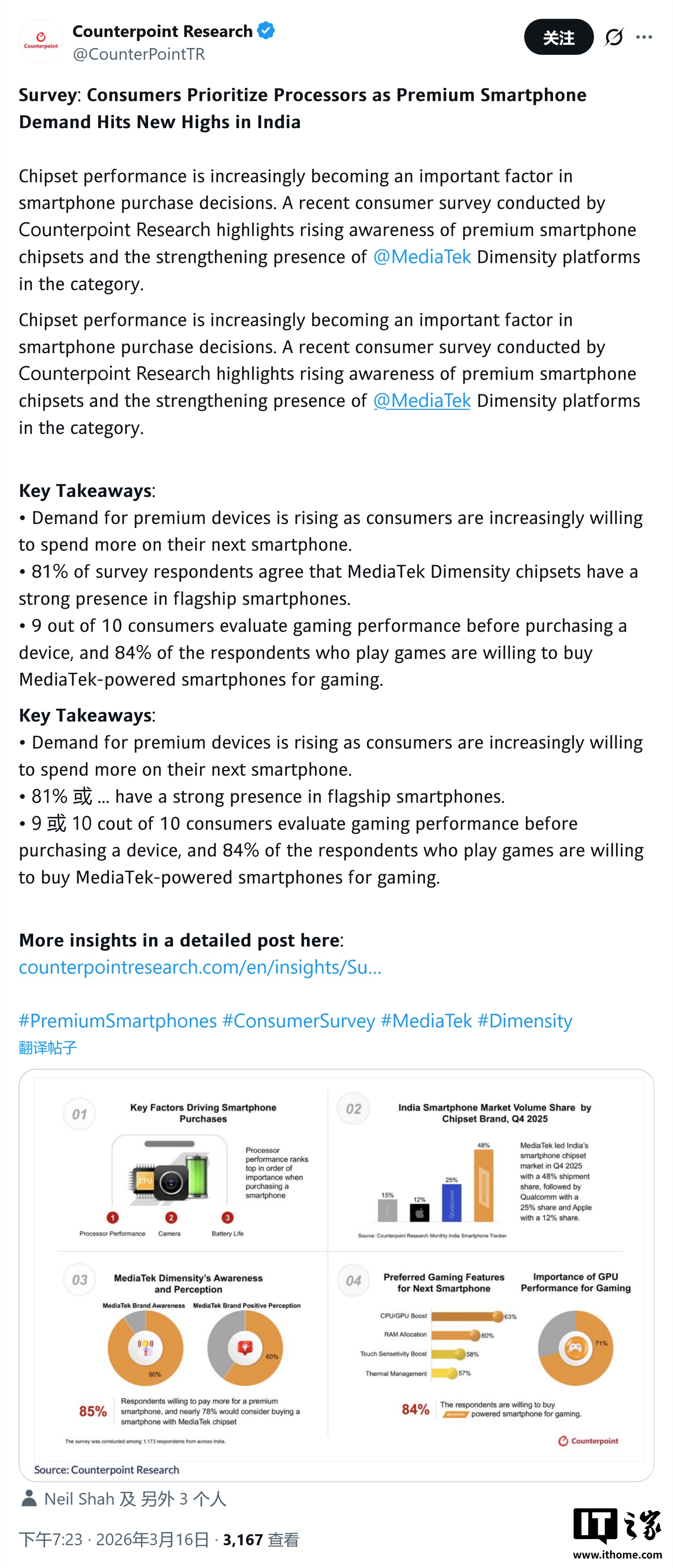 CounterPoint 稱聯(lián)發(fā)科高端化戰(zhàn)略成效顯著,2025Q4 印度手機(jī)市場斬獲 48% 份額