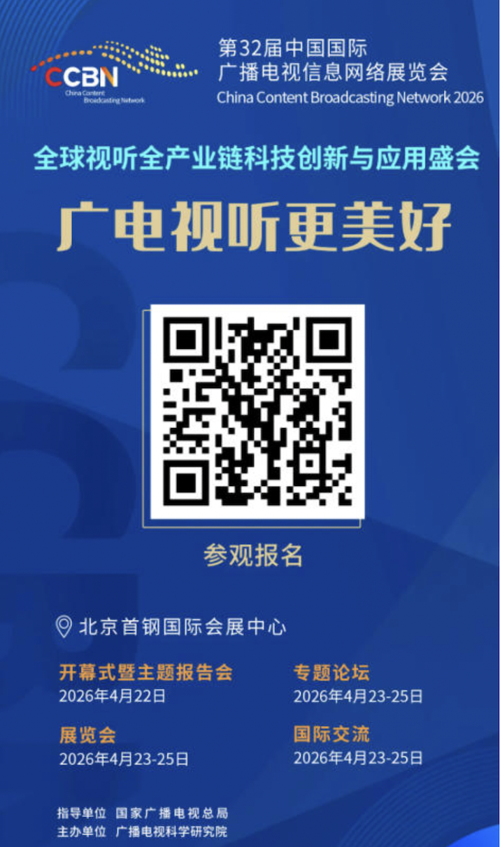第三十二屆中國(guó)國(guó)際廣播電視信息網(wǎng)絡(luò)展覽會(huì)(CCBN2026)將在北京舉辦,2026年4月22日(星期三)在北京首鋼國(guó)際會(huì)展中心會(huì)議中心(1號(hào)館二層)主報(bào)告廳舉辦開幕式暨主題報(bào)告會(huì),4月23日(星期四)至4月25日(星期六)在北京首鋼國(guó)際會(huì)展中心舉辦展覽會(huì)、專題論壇等活動(dòng)。CCBN2026以“廣電視聽(tīng)更美好——數(shù)智創(chuàng)新 引領(lǐng)未來(lái)”為主題,圍繞國(guó)家廣播電視總局十項(xiàng)重點(diǎn)工作部署,聚焦科技創(chuàng)新引領(lǐng)與產(chǎn)業(yè)創(chuàng)新升級(jí),全面展示新技術(shù)、新產(chǎn)品、新應(yīng)用、新業(yè)態(tài)、新服務(wù),形成“以展促研、以展促用、以展促產(chǎn)、以展促合”的綜合帶動(dòng)效應(yīng),助力推動(dòng)廣電媒體數(shù)智化轉(zhuǎn)型和系統(tǒng)性變革。展會(huì)堅(jiān)持高端化、專業(yè)化、市場(chǎng)化、國(guó)際化、品牌化辦會(huì)方向,統(tǒng)籌組織開幕式暨主題報(bào)告會(huì)、專題論壇、展覽展示、成果發(fā)布、國(guó)際交流等系列活動(dòng),著力打造:行業(yè)創(chuàng)新成果的集中展示平臺(tái)、技術(shù)趨勢(shì)和政策指引的權(quán)威發(fā)布平臺(tái)、產(chǎn)業(yè)鏈協(xié)同合作的重要對(duì)接平臺(tái)、廣電視聽(tīng)高質(zhì)量發(fā)展的標(biāo)志性品牌盛會(huì)。