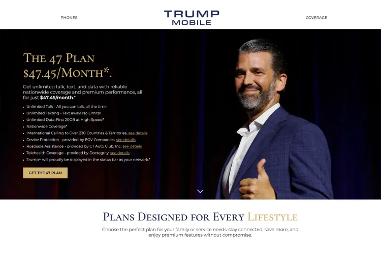 除手機(jī)信息更新外,特朗普手機(jī)還調(diào)整了移動(dòng)通信套餐。47.45 美元(現(xiàn)匯率約合 324.7 元人民幣)套餐面向軍人及退伍軍人提供 15% 折扣,同時(shí)新增家庭套餐,辦理號(hào)碼越多單價(jià)越低。官網(wǎng)甚至打出宣傳語(yǔ):“‘Trump’標(biāo)識(shí)將作為你的網(wǎng)絡(luò)名稱,醒目顯示在狀態(tài)欄中”。