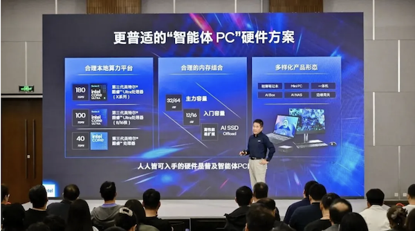 憑借酷睿Ultra和酷睿處理器的強大本地算力,單臺智能體PC就能以混合AI部署方式運行OpenClaw等智能體,其產(chǎn)品形態(tài)覆蓋從輕薄本、Mini PC、一體機到AI Box、AI NAS、邊緣網(wǎng)關(guān)等全場景,為不同需求的用戶提供清晰的能力定位。