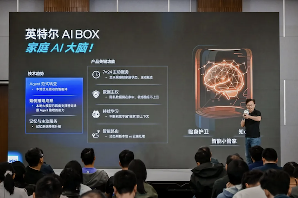 英特爾將AI創(chuàng)新延伸至家庭場景,推出了“家庭AI大腦”——AI Box。它構(gòu)建了以家庭本地算力為核心、云端能力為輔的混合智能架構(gòu)。作為部署于用戶家中的私有AI中心與智慧中樞,它從架構(gòu)層面強化了家庭數(shù)據(jù)的保護,讓用戶從容享受AI的便捷。
