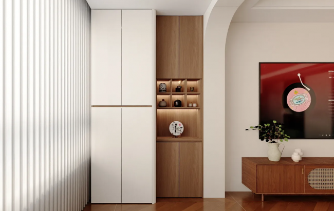 風(fēng)格統(tǒng)一協(xié)調(diào):全屋柜體采用統(tǒng)一材質(zhì)、花色和設(shè)計語言,營造整體和諧的家居氛圍。