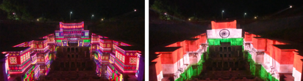 整場光影秀融合了帕坦帕托拉紡織紋樣、古代水利結(jié)構(gòu)元素及象征性圖案,并輔以引人入勝的音樂與旁白。傳統(tǒng)印度樂器與電影配樂交織,呼應(yīng)鑿子和流水的聲音,引領(lǐng)觀眾穿越創(chuàng)造、敬拜和重新發(fā)現(xiàn)的時(shí)刻。