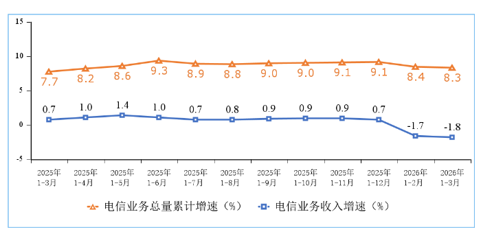 2026年一季度通信業(yè)經(jīng)濟運行情況
